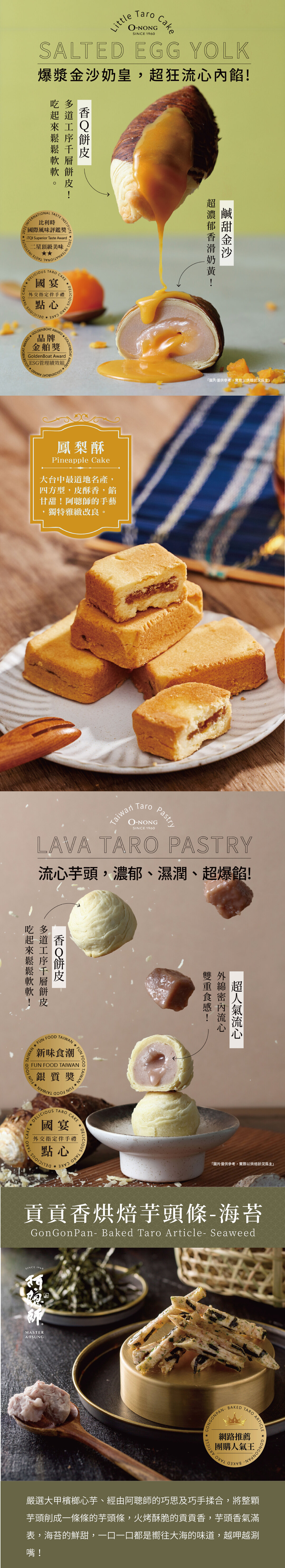 【芋頭酥系列】嚴選上等芋頭,以植物油製成,在芋頭酥之父「阿聰師」的巧手下,化做一片片層次分明的玫瑰花瓣,純手工製作,新鮮烘焙。