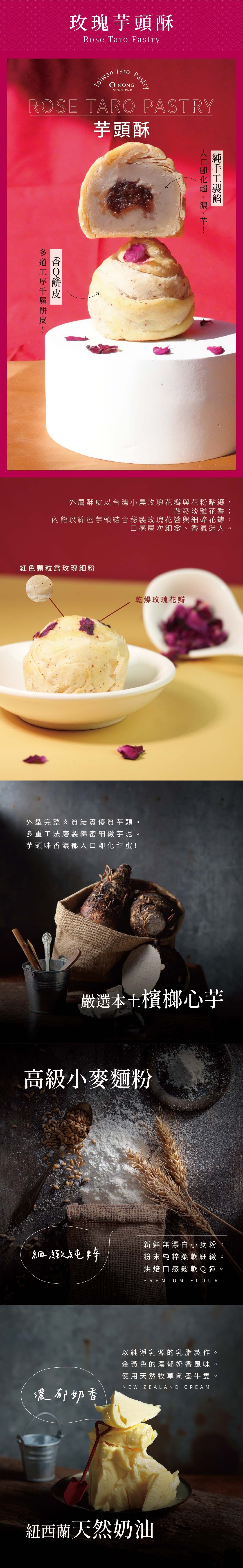 內餡以綿密芋頭結合秘製玫瑰花醬與細碎花瓣,