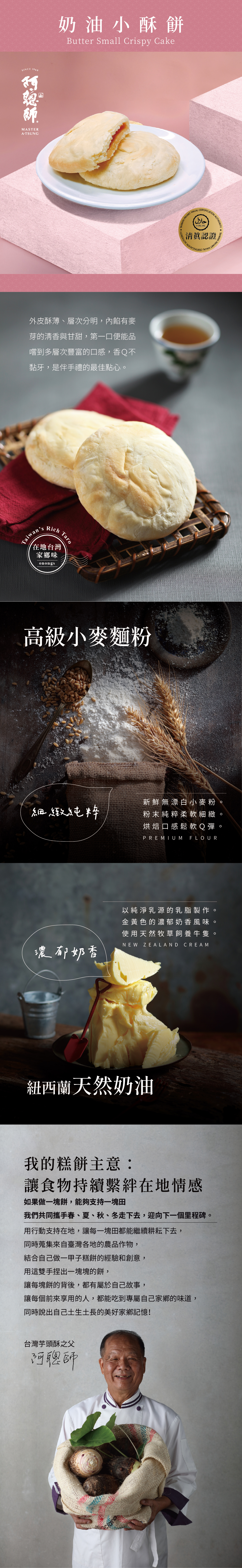 人工桿製的麵皮,讓奶油酥餅有著「層次」的口感,層層的酥皮,包覆著微甜並散發著奶香味的內餡,皮酥餡Q,口感馥郁香醇。