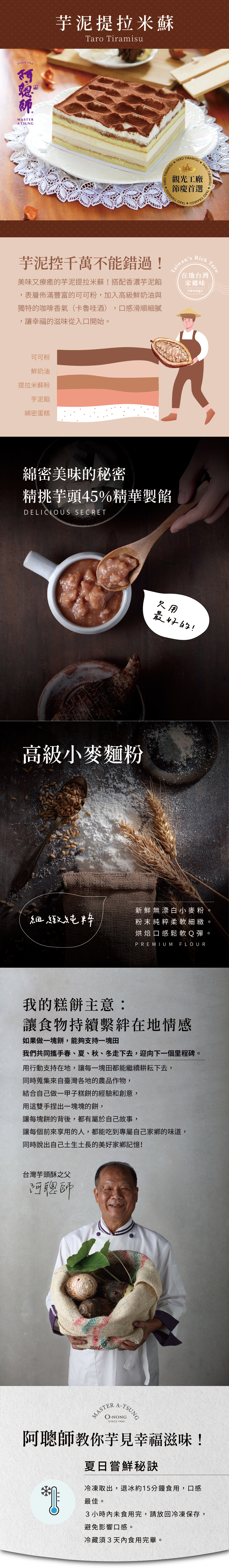 美味又療癒的芋泥提拉米蘇!搭配香濃芋泥餡,表層佈滿豐富的可可粉,加入高級鮮奶油與獨特的咖啡香氣(卡魯哇酒),口感滑順細膩,讓幸福的滋味從入口開始。