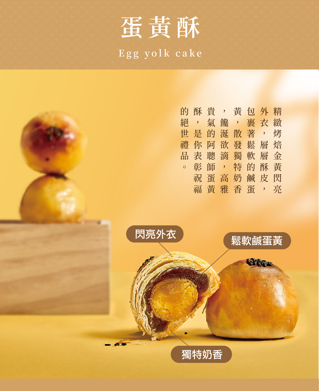 精緻烤焙金黃閃亮外衣,層層酥皮,包裹著鬆軟的鹹蛋黃,散發獨特奶香,饞涎欲滴,高雅貴氣的阿聰師蛋黃酥,是你表彰祝福的絕世禮品。